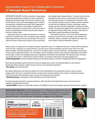 A first in the field of Appreciative Inquiry, this important resource provides twenty one ready-to-use workshops for facilitators, leaders, consultants, and trainers who want to empower others in creating collaborative solutions.