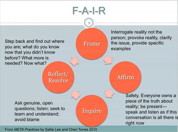 - Address difficult conversations using Appreciative Inquiry and reflective practice.